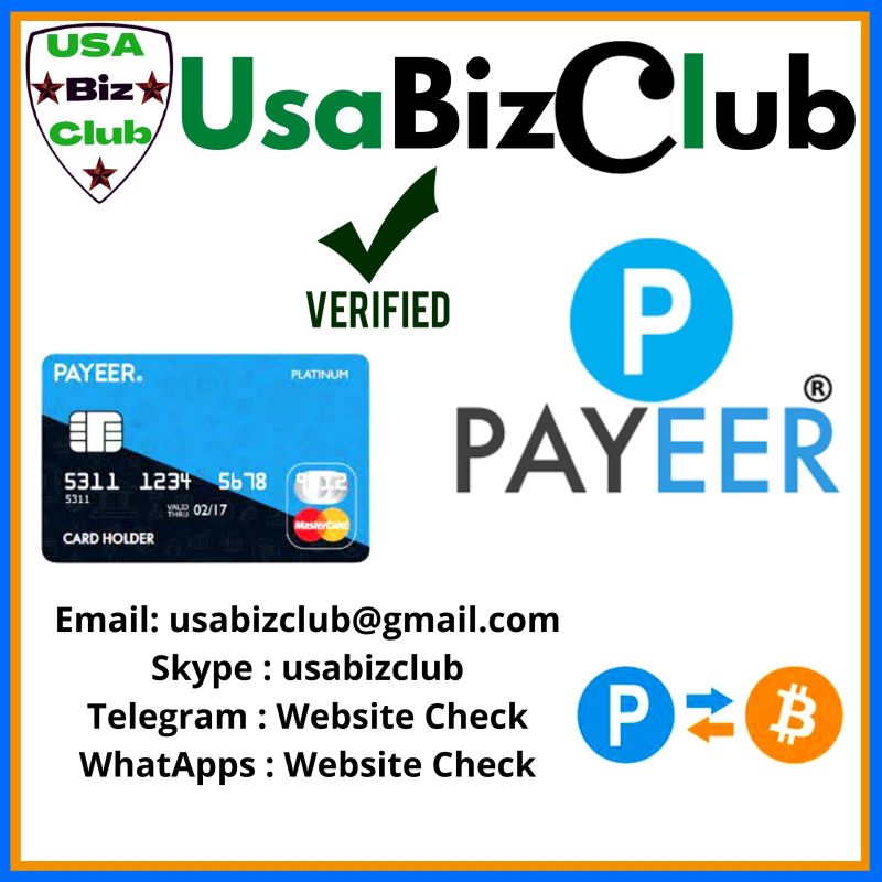 We offer our support including payeer accounts around the world. We give 100% safe and completely checked individual and business payeer accounts in best cost. On the off chance that you need safe steady and full confirmed individual and business payeer accounts you can put in your request to usabizclub.com.